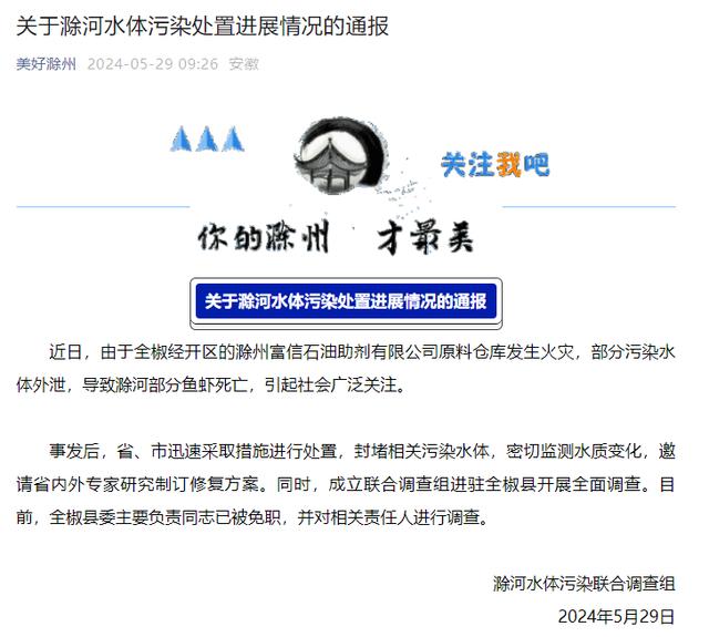 安徽:彻查滁河水体污染问题,绝不掩盖...